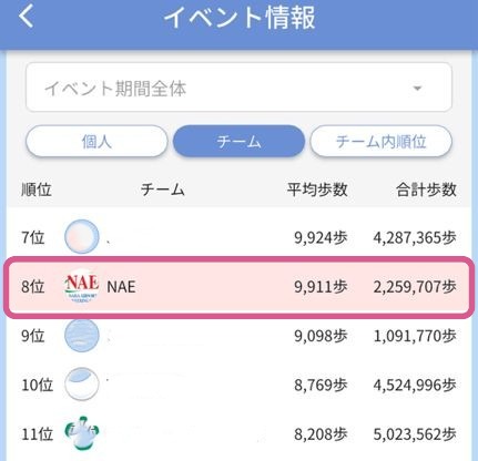 11日間(11月10日~11月21日)の企業対抗ウォーキングイベントへ参加しました。 結果は、41チーム中8位でした!! 入賞です!! 平均歩数は、9,911歩! 目標は8,000歩でしたので、無事達成することができました。 このイベントをきっかけに、自分の歩数が毎日どれくらいなのか意識してもらえればと思います。