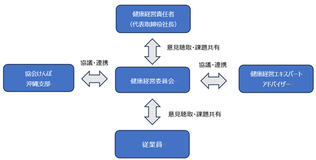 その為、沖縄を訪れるお客様により一層の安全性、快適性を提供させていただくとともに、安全に効率良く確実な作業を行うためにも、社員一人ひとりが健康意識を高め自己能力を最大限に引き出せるよう、健康増進に取り組むことを宣言します。